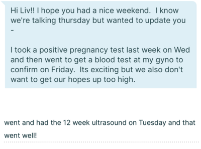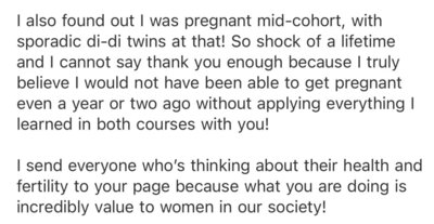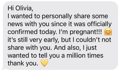 “I am excited to say, a year after coming off birth control I got pregnant!Olivia is the first and only coach I have ever known. And honestly, I don't know how you can find anyone better!”
