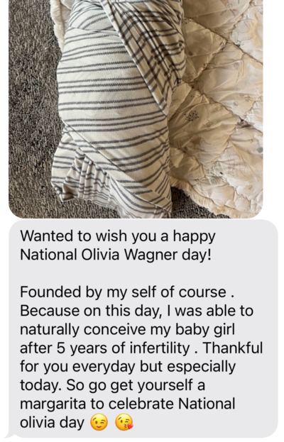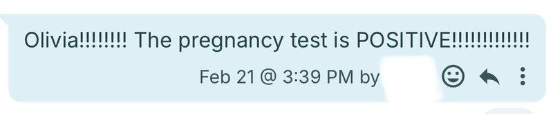 “WE GOT PREGNANT! After months of working with Olivia, we prepared for another round of IVF and were finally successful. We are expecting baby #2 in October 2025!”